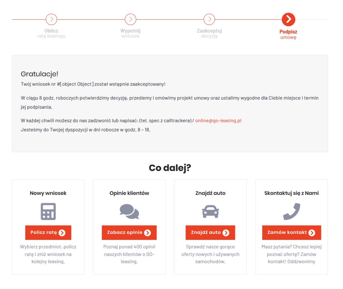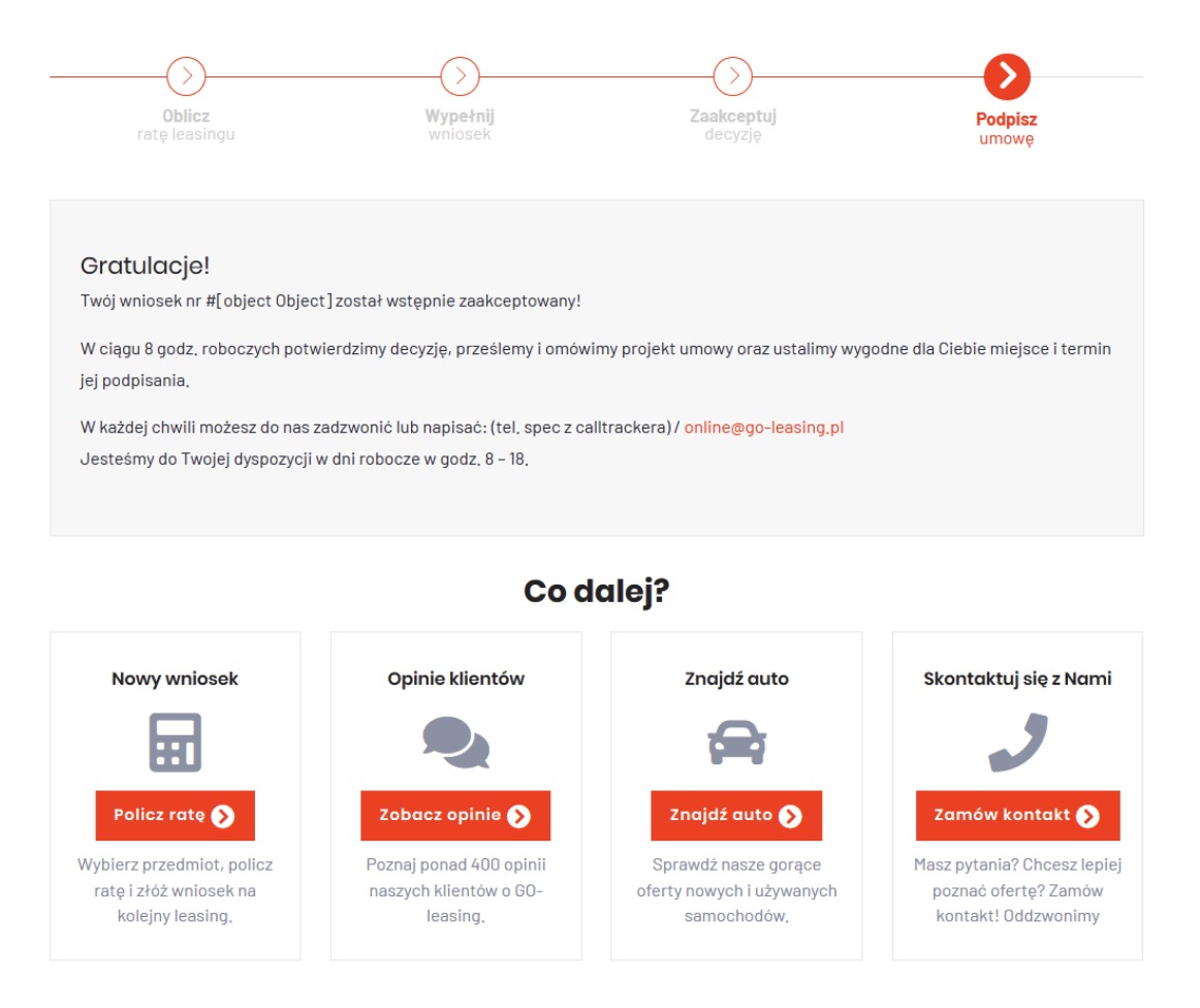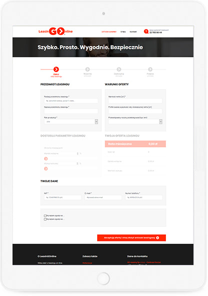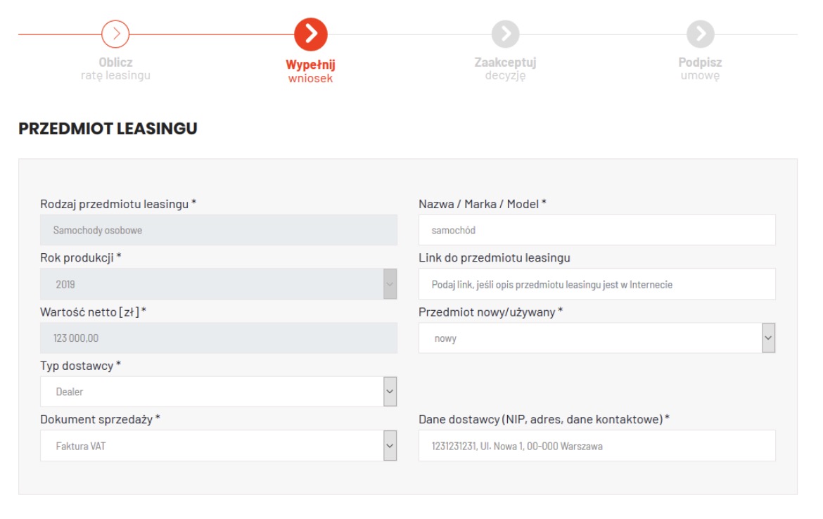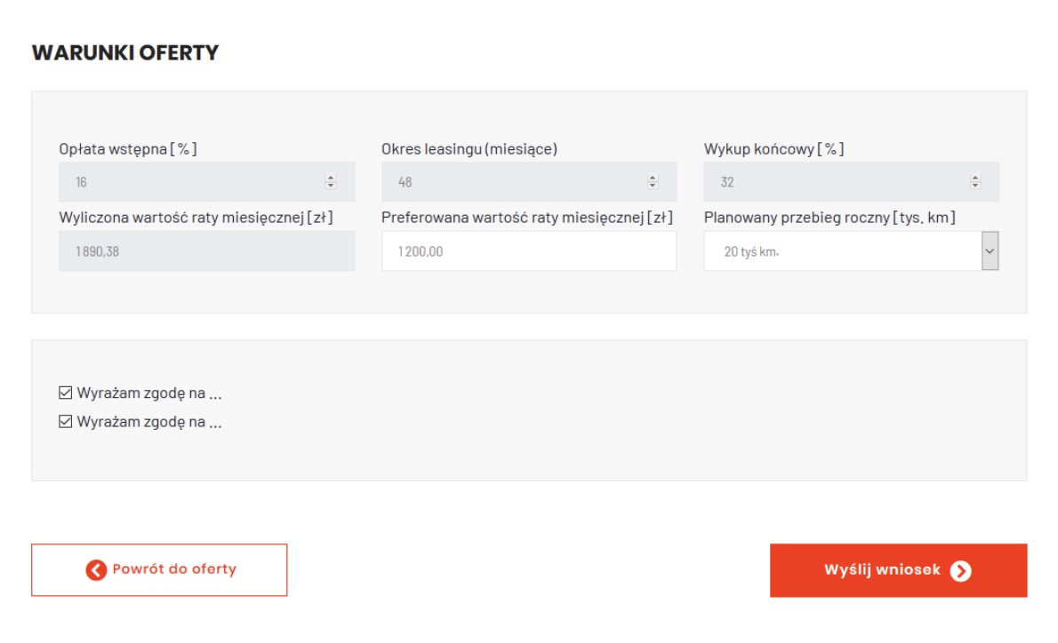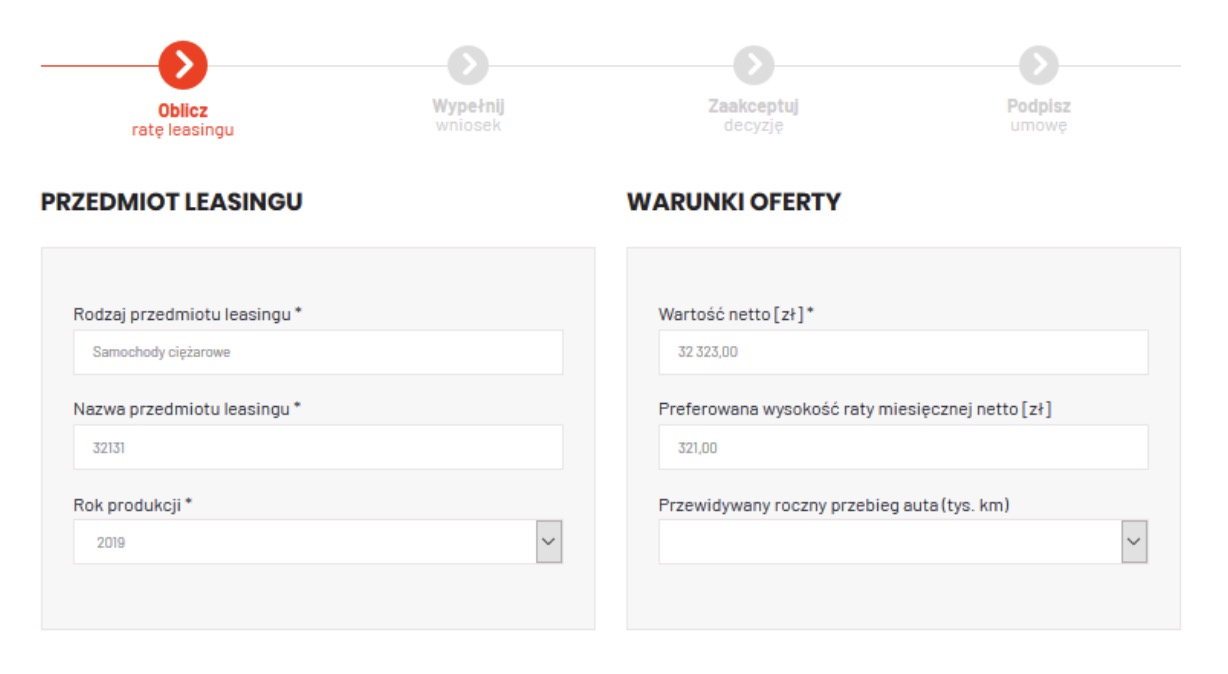 Gdy podasz swoje dane i zaakceptujesz ofertę, będziesz mógł od razu złożyć wniosek o leasing.