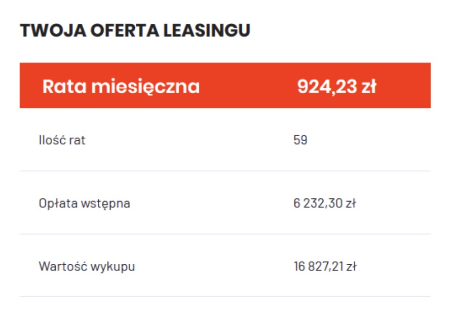 Możesz też dostosować jej wielkość zmieniając okres umowy, wysokość opłaty wstępnej czy wykupu.