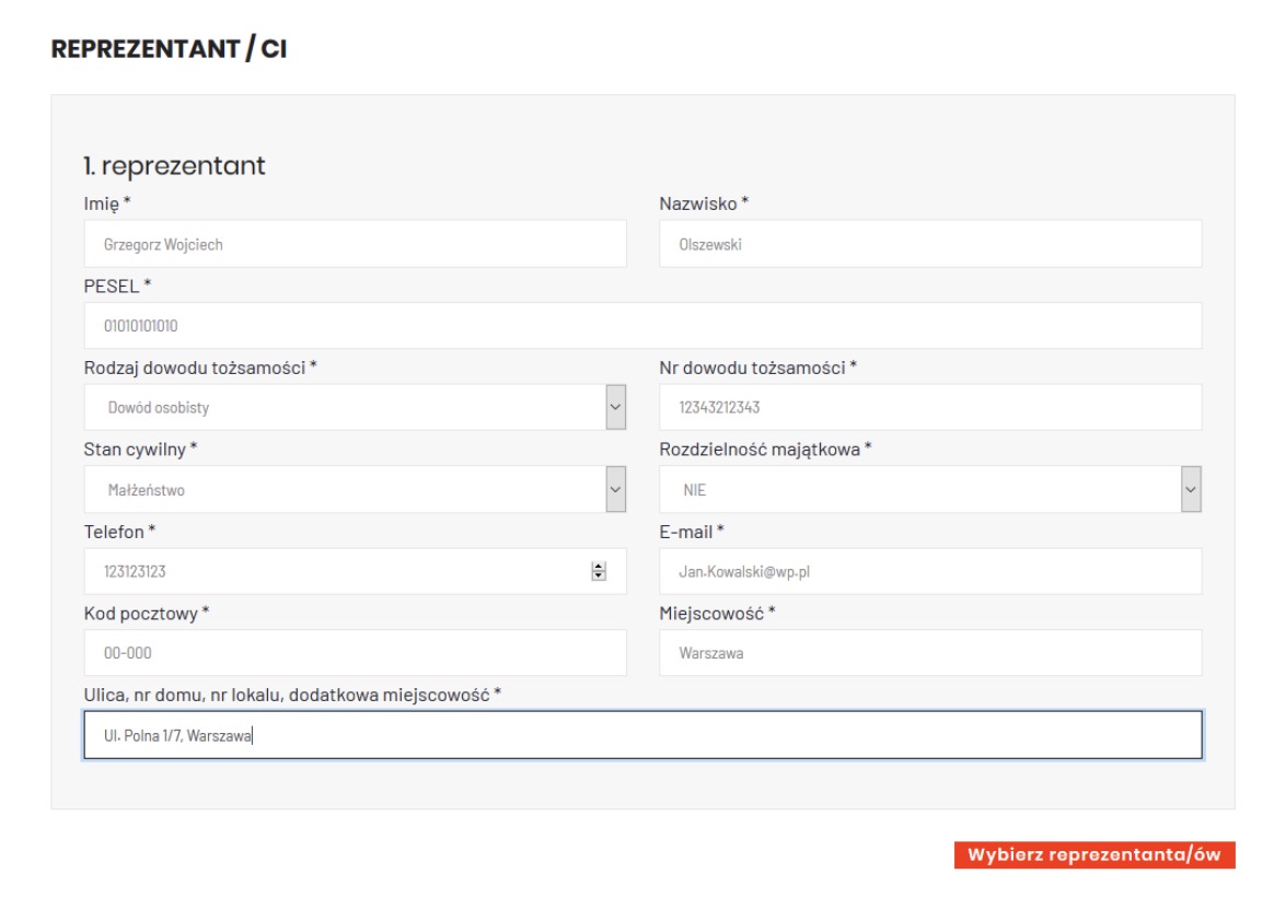 Wskaż reprezentantów i zaakceptuj warunki oferty.