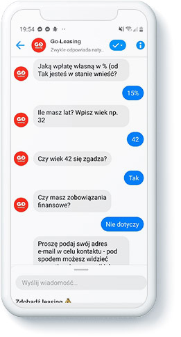 GO-leasing, partnerska sieć brokerów leasingu w Polsce, wprowadziła na rynek narzędzia, dzięki którym osoby zainteresowane tą formą finansowania mogą szybko poznać decyzję o jego przyznaniu i podpisać umowę. Dla użytkowników popularnego Messengera przygotowano GObota pomagającego w procesie ubiegania się o leasing. Osoby, które nie korzystają z tego komunikatora, mają do dyspozycji platformę internetową LeasinGOnline.